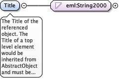 <xs:element name="Title" type="eml:String2000" minOccurs="1" maxOccurs="1"><xs:annotation><xs:documentation>The Title of the referenced object. The Title of a top level element would be inherited from AbstractObject and must be present on any referenced object.</xs:documentation></xs:annotation></xs:element>