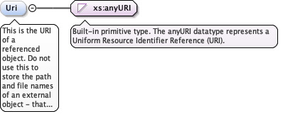 <xs:element name="Uri" type="xs:anyURI" minOccurs="0" maxOccurs="1"><xs:annotation><xs:documentation>This is the URI of a referenced object. Do not use this to store the path and file names of an external object - that is done through the External Dataset machinery. This element is intended for use with the Energistics Transfer Protocol.</xs:documentation></xs:annotation></xs:element>